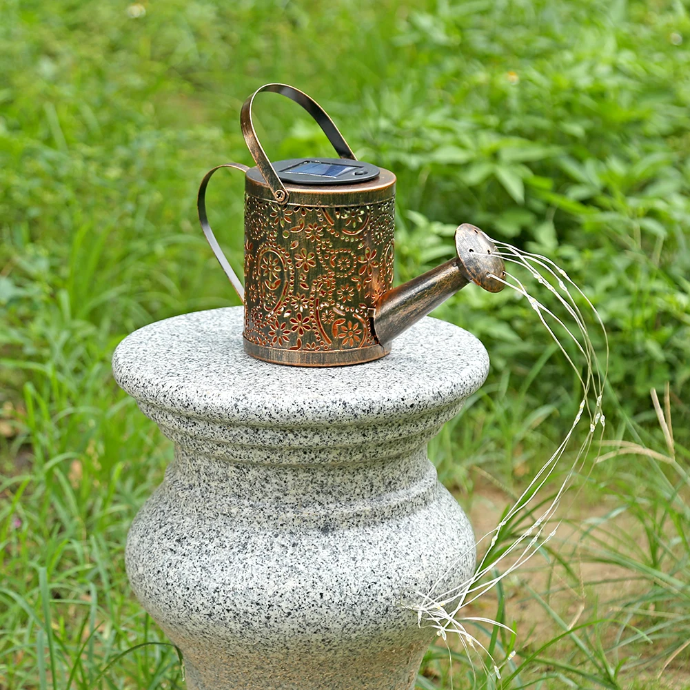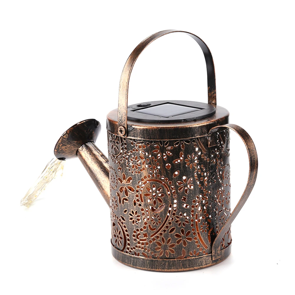 Светодиодный чайник на солнечной батарее, Сказочная лампа из кованого железа для полива цветов, для улицы, водонепроницаемый светильник для двора, светильник ное украшение для сада