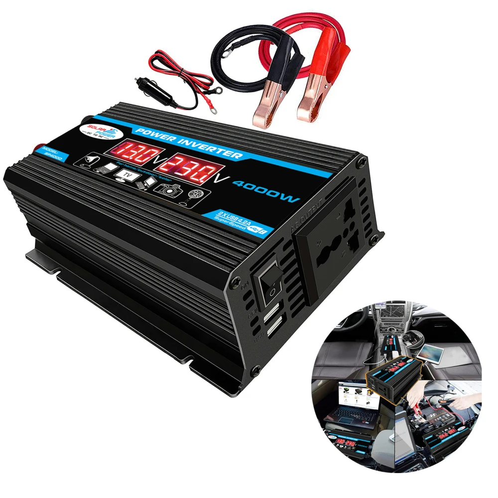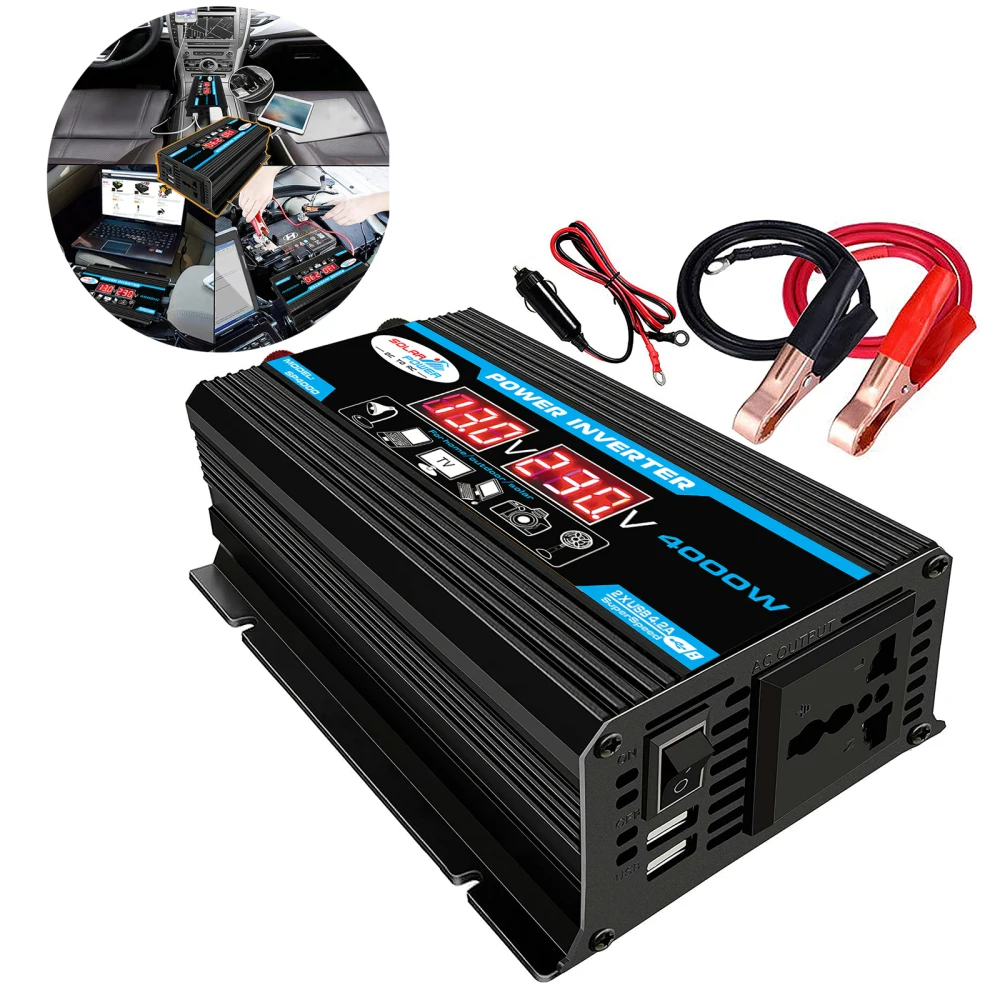 преобразователь 12в 220в v 12-220 В автомобильный силовой инвертор 4000 Вт макс двойной USB с дисплеем напряжения Авто конвертер высокая производительность для парохода общественная безопасность инвертор 12v 220v