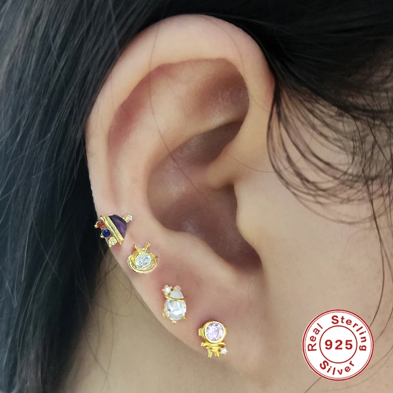 Серьги-гвоздики женские из стерлингового серебра 925 пробы, с кристаллами