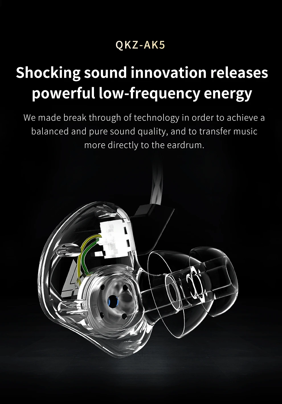 QKZ AK5 3,5 мм проводные наушники с двойным приводом HiFi наушники с микрофоном Стерео спортивные наушники гарнитура для игр наушники