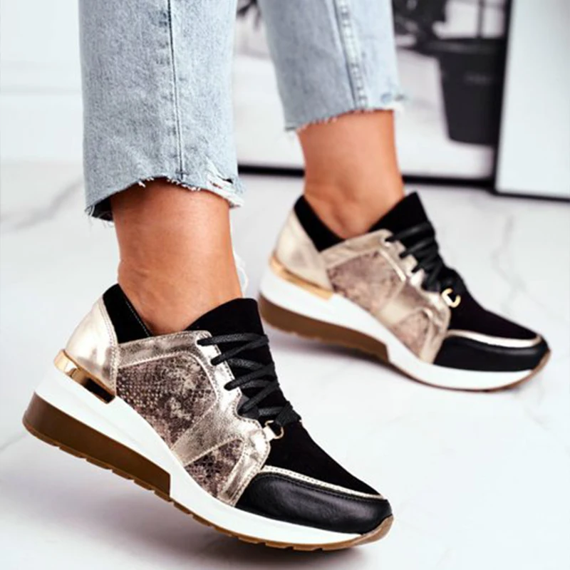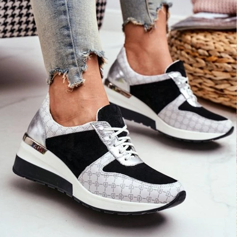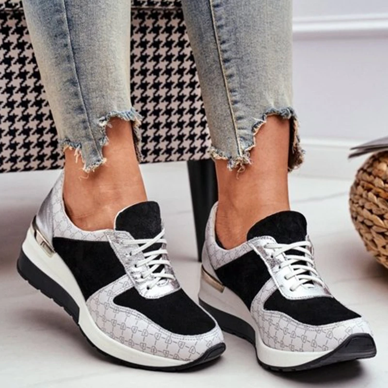 Женские сетчатые кроссовки, дышащие теннисные туфли на платформе, на шнуровке, Вулканизированная подошва, в стиле пэчворк, на осень