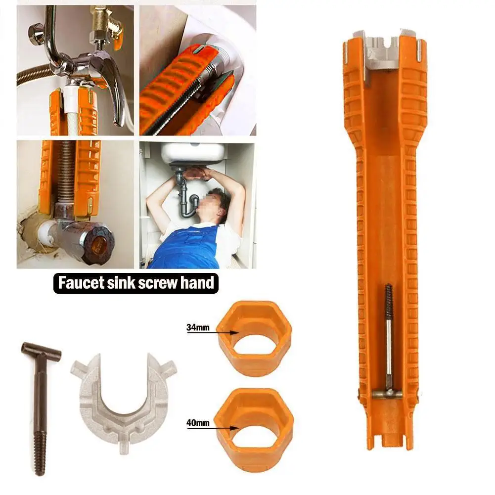 Ключ 8 в 1 для раковины, для раковины, для кухни, ванной, для раковины, противоскользящий ключ для трубы, Многофункциональный ручной инструмент для ремонта сантехники