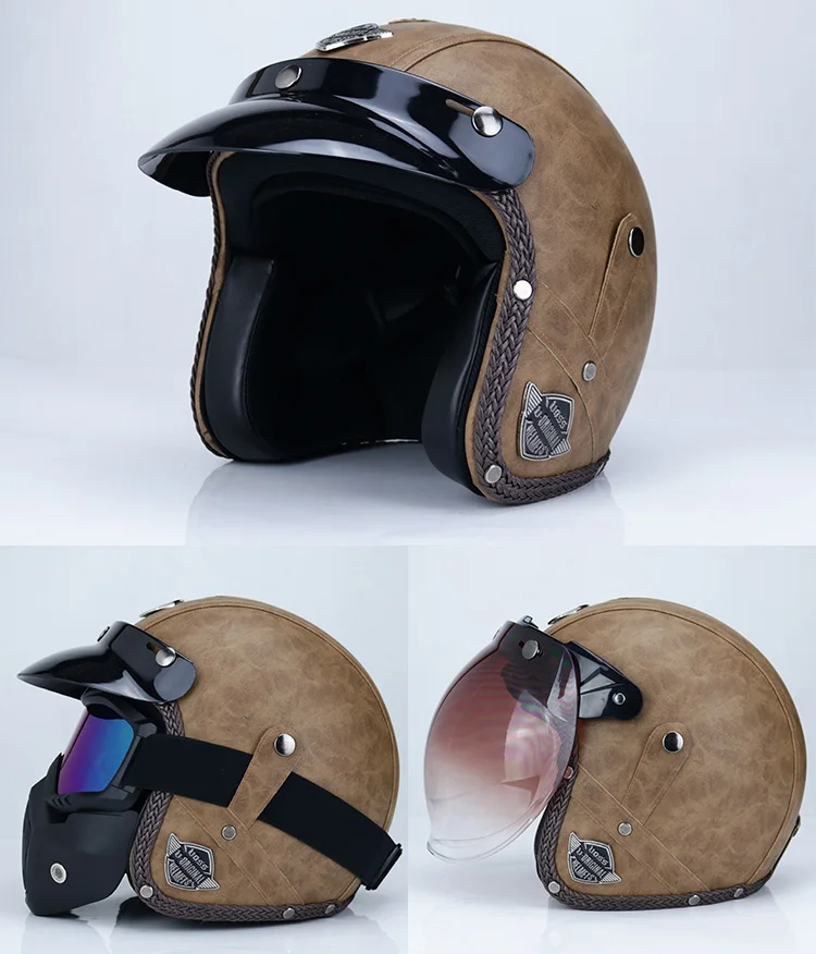 Шлем мотоциклетный мужскойженский, винтажный, с открытым лицом, 34