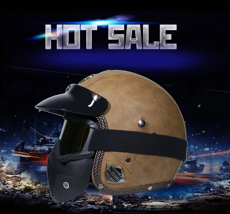 Шлем с открытым лицом 34, мотоциклетный Мужской винтажный мотоциклетный шлем в стиле ретро, мотоциклетный шлем, шлем пилот, кафе, гоночный классический шлем