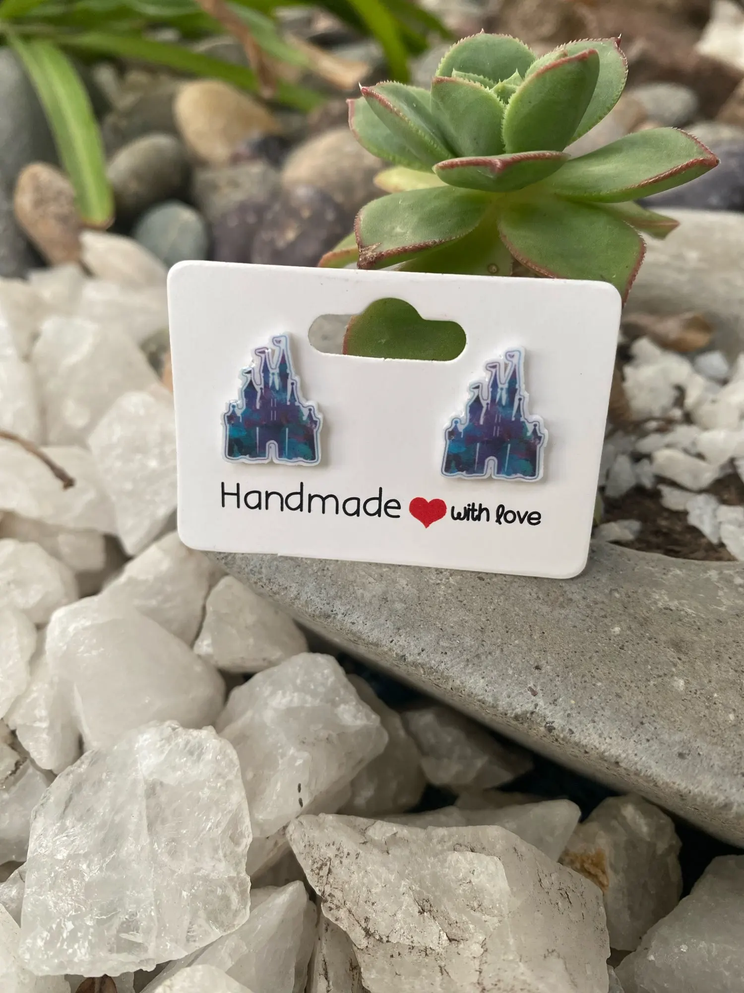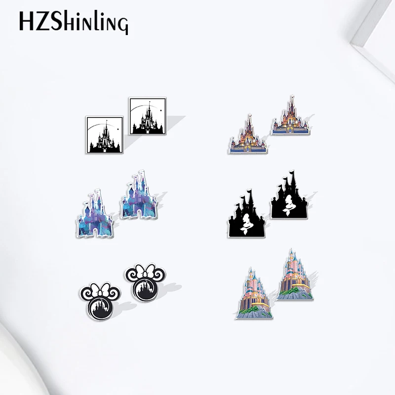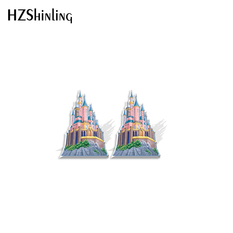 Милые акриловые серьги-гвоздики из мультфильма Замок Принцессы Диснея, ювелирные изделия из эпоксидной смолы для девочек