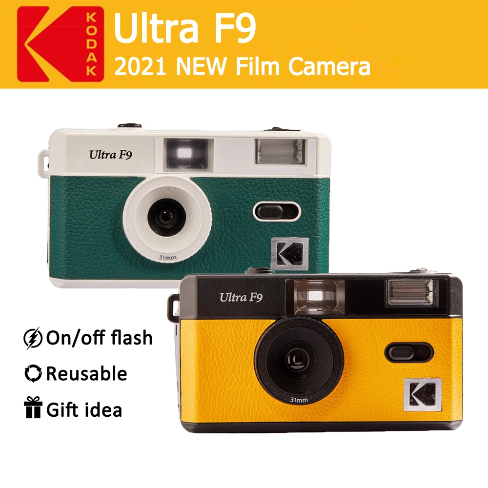Многоразовая пленочная камера Kodak Ultra F9 35 мм, желтыйНочной зеленый цвет, подходит для подарка на день рождения для мужчин и женщин
