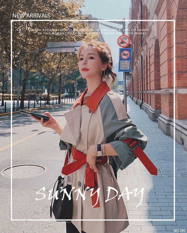 Женская ветровка средней длины в британском стиле Новинка весна-осе...