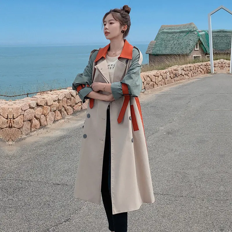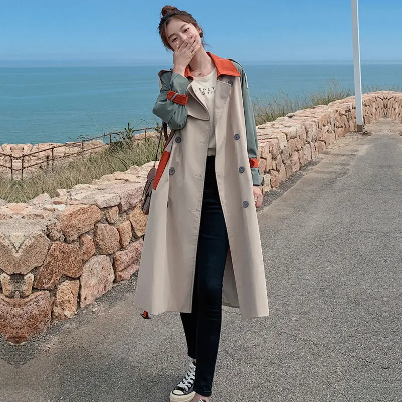 Тренчкот женский двубортный, длинная уличная одежда в стиле пэчворк...