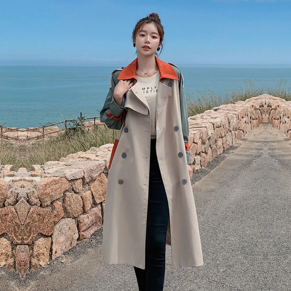 Женский двубортный плащ с поясом, Длинный свободный тренчкот на весну-осень, дамский плащ, ветровка, 2021