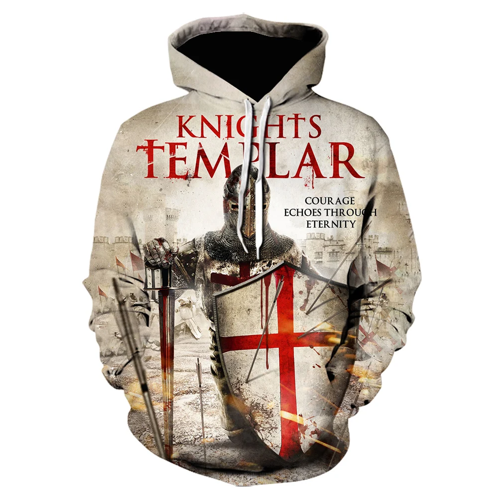 Новые мужские толстовки с 3d принтом рыцарей тамплиеров, Забавный д...