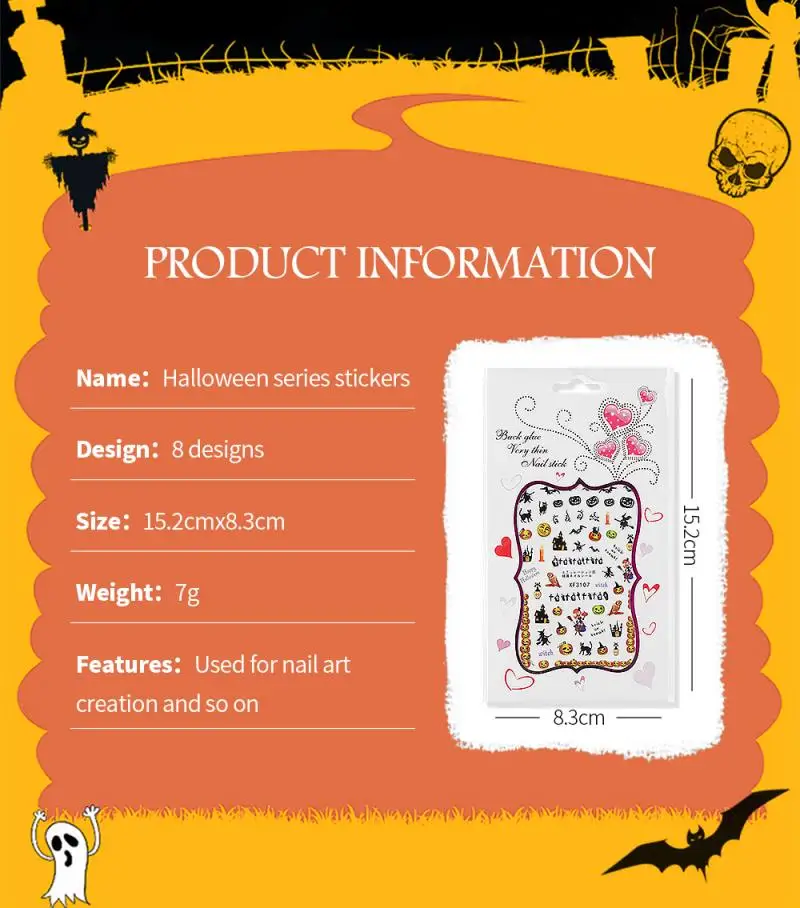 1 лист наклеек для ногтей на Хэллоуин, серия паутины, черная кошка, летучая мышь, тыква, рисунок лица, клейкие наклейки для творчества, для маникюра