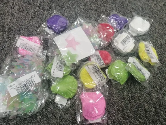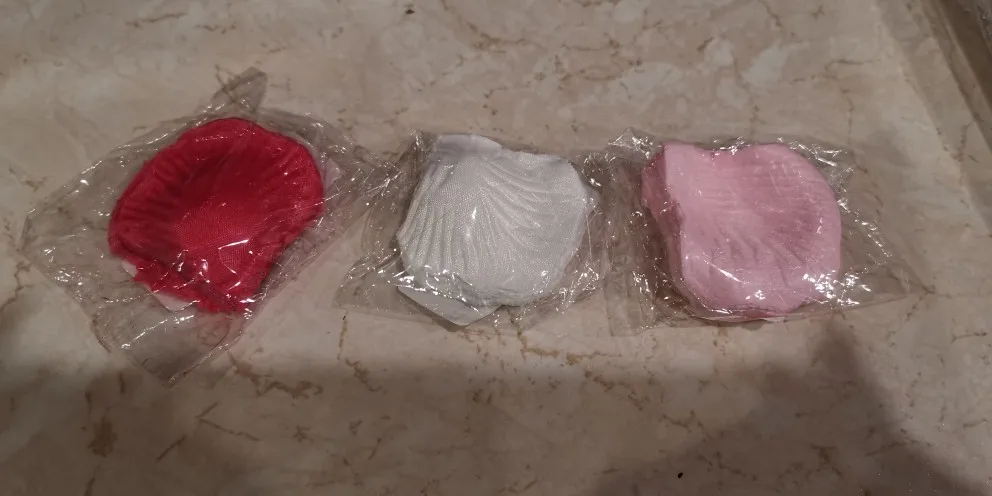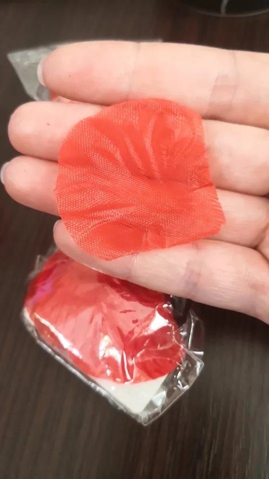 фактически, если разделить упаковку из 100 шт. поштучно, лепестки почти что прозрачные. возможно, в общей массе они будут казаться такими же розовыми, как на фото продавца, но пока что непонятно. Доставка около двух недель в Ростовскую область, пришла вместе с другими посылками.
