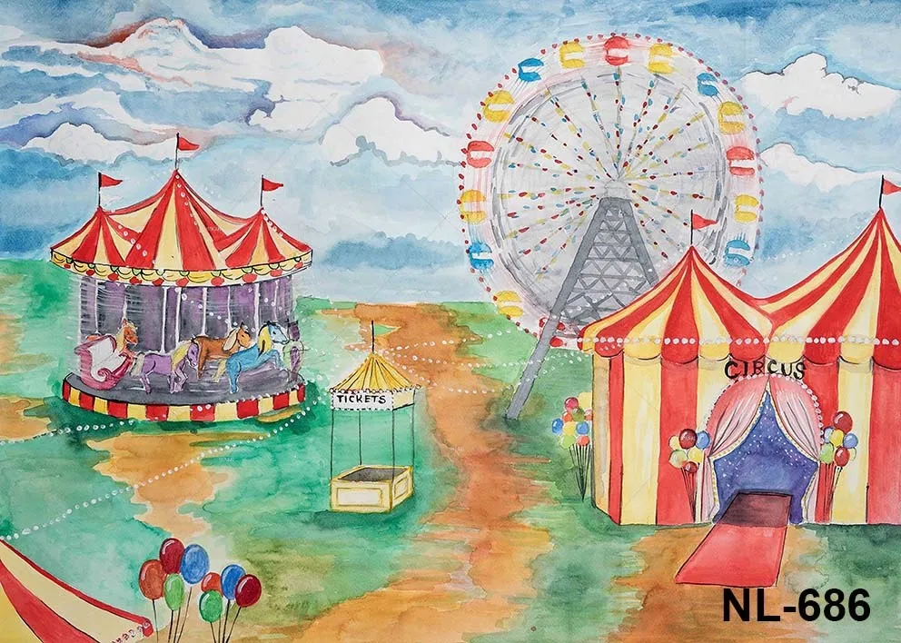 Задний фон для фотосъемки в цирке, фотостудия с неоновыми искусственными элементами для детского дня рождения