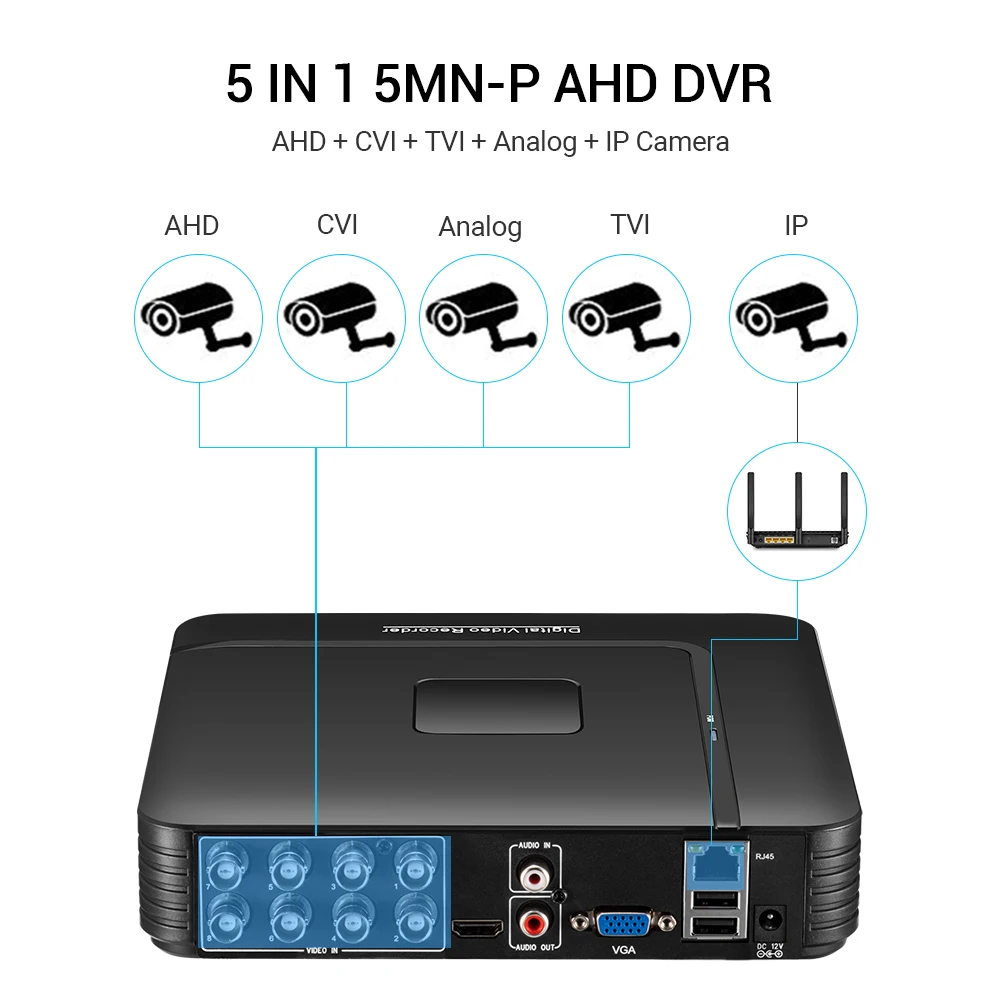H.265 4CH8CH CCTV DVR 5MP-N 5in1 AHD TVI CVI CVBS IP-камера гибридный цифровой видеорегистратор домашняя система безопасности удаленный доступ