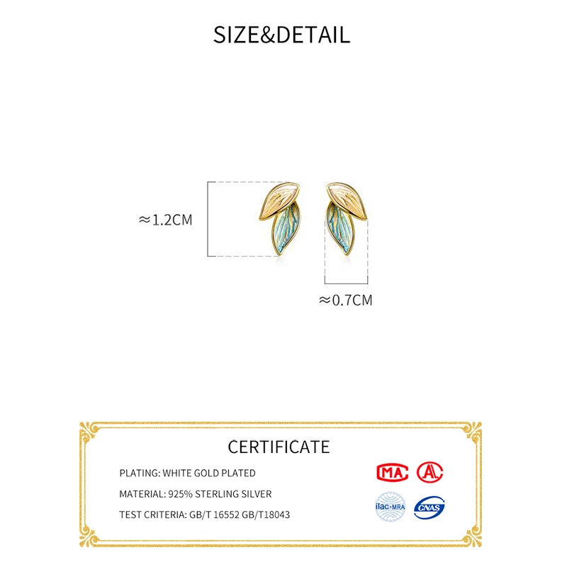 Женские серьги-гвоздики в виде листьев из серебра 925 пробы