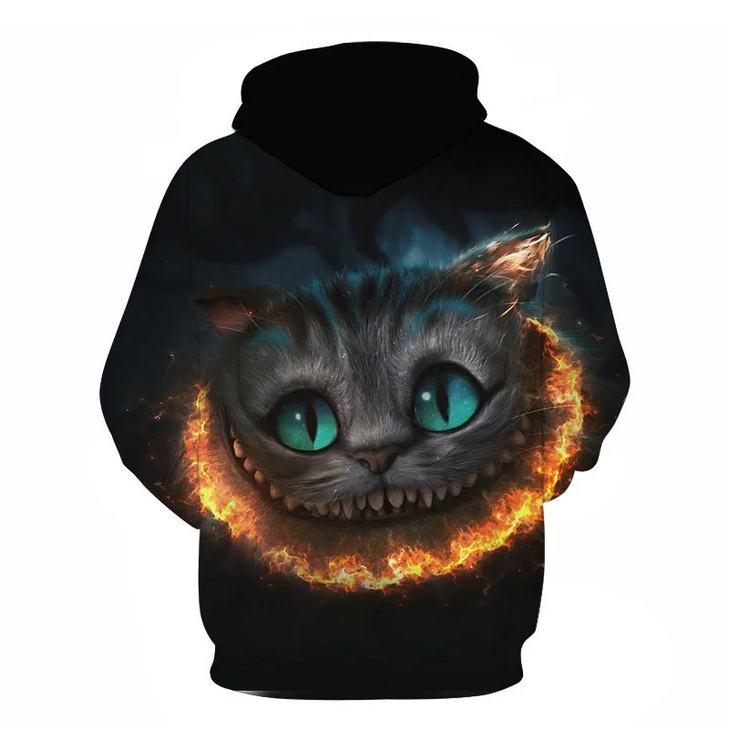 Новинка, черная толстовка с 3d рисунком кота, милый мультяшный Повс...