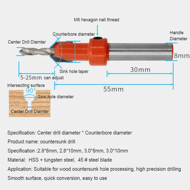 Бесплатная доставка, конусное сверло Sank для деревообработки, ступенчатое сверло с головкой из сплава, ступенчатое сверло для установки винтов по дереву