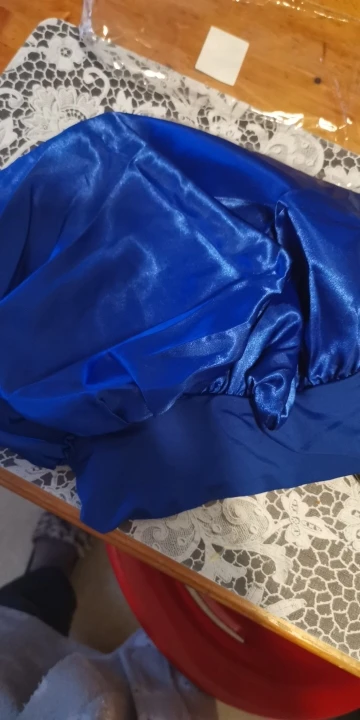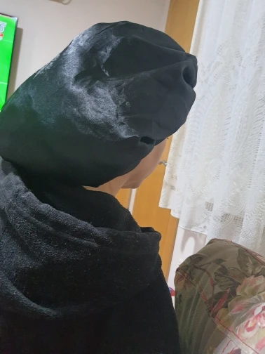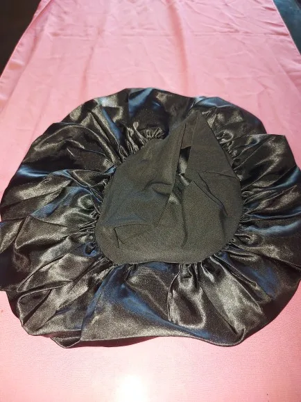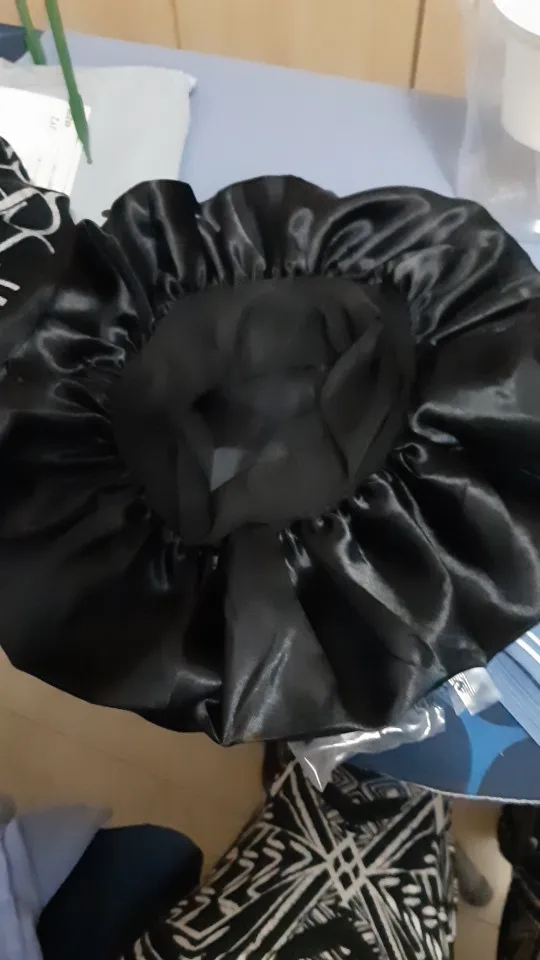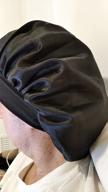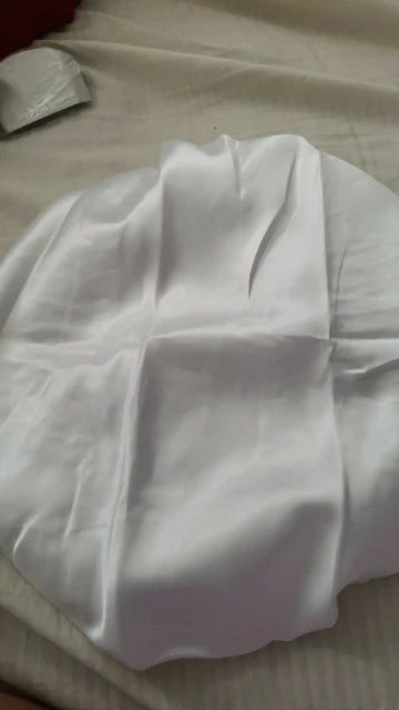 Очень мягкий материал на крышке, с эластичной лентой, чтобы держать его на месте в ночное время, хорошо, если вы поставляете бигуди во время сна или не хотите просыпаться с запутанными волосами