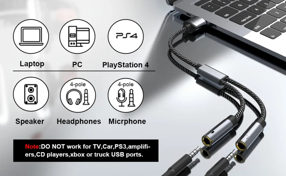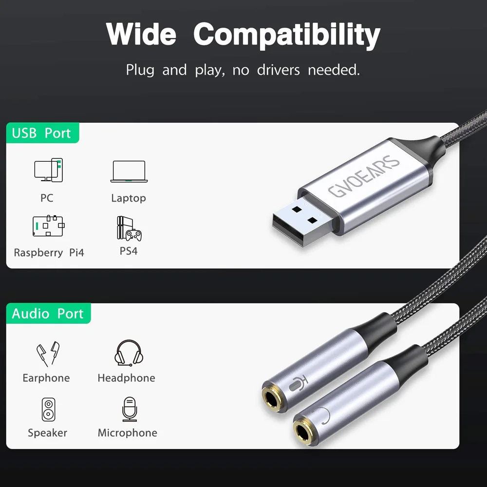 Этот USB аудиоадаптер GEVO идеально подходит для замены вашей неисправной звуковой карты или аудиопорта. Например, PS4, ПК, ноутбука, настольного компьютера, MacBook и т. д.
