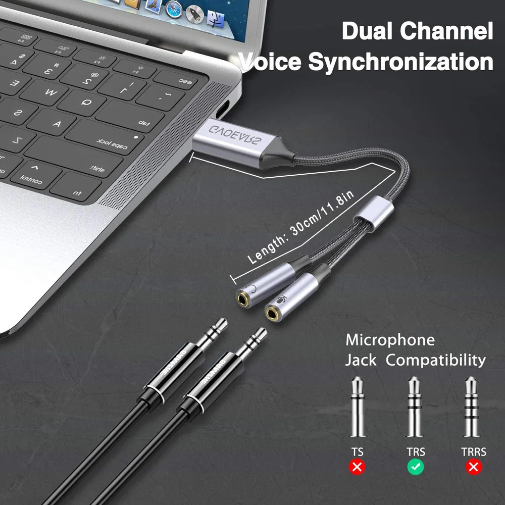Поддержка прослушивания, двойные функции. Поддержка разъема стандарта TRS. Этот прочный практичный стереозвуковой адаптер настолько мал. Всего 30 см/11,8 дюйма в длину, экономит место и берет с собой.