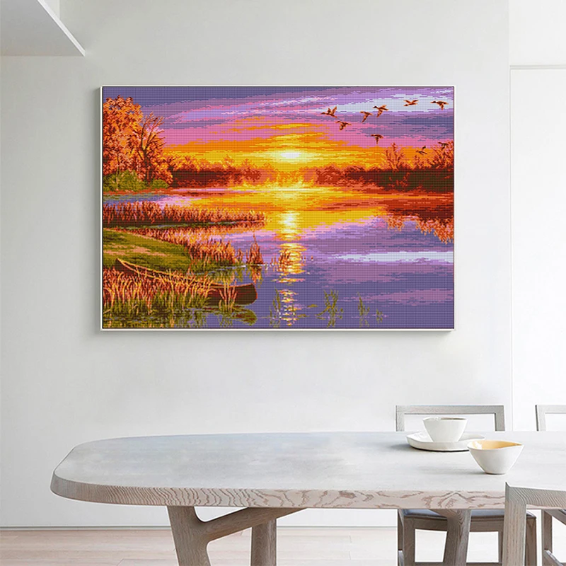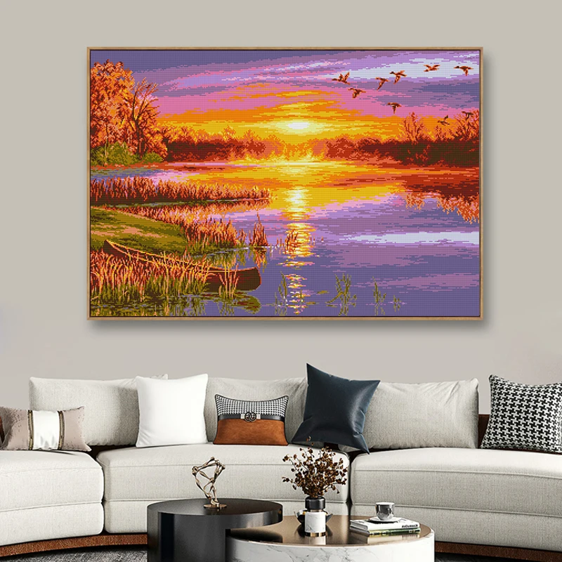 Осень закат пейзаж узор вышивка крестиком комплект Aida 14CT 11CT граф холст Рукоделие Набор сделай сам украшение дома подарок