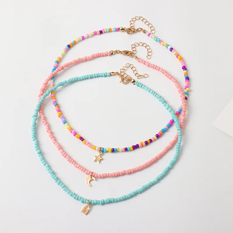Модное ожерелье-чокер с бусинами в стиле бохо, Женская цепочка на шею в богемном стиле, карамельные цвета, ожерелье из сплава с подвеской в виде звезды, Луны, ювелирные изделия для девочек