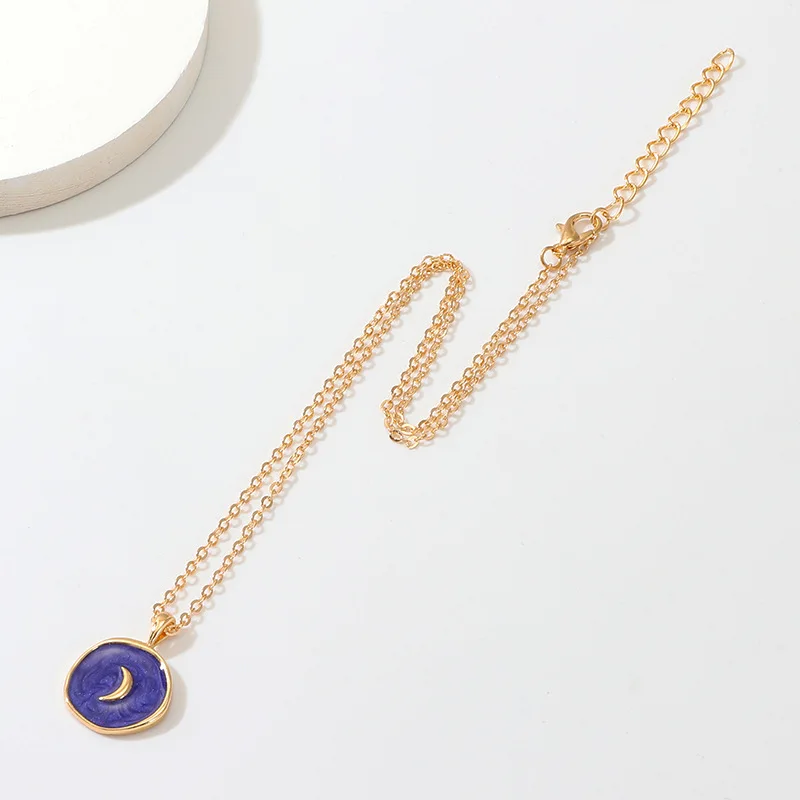 Ожерелье женское эмалированное, с круглым кулоном в виде звезд, Лун...