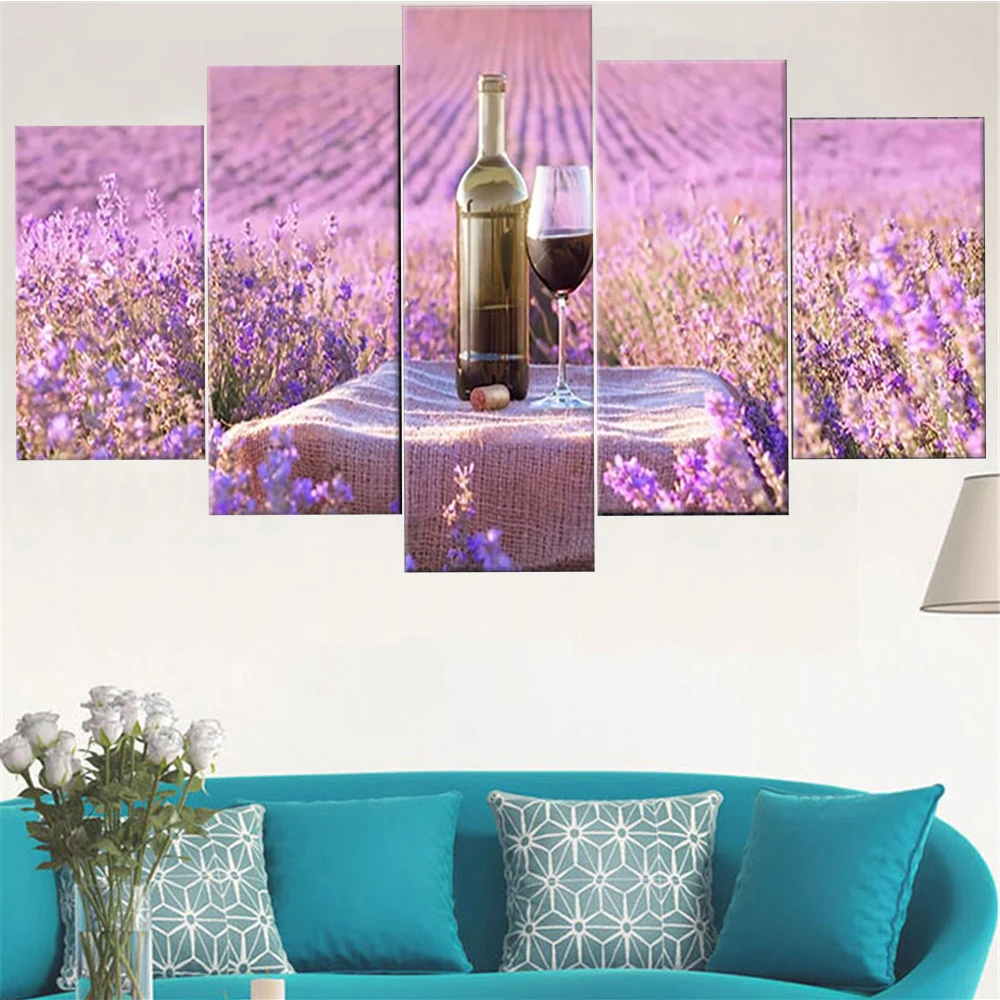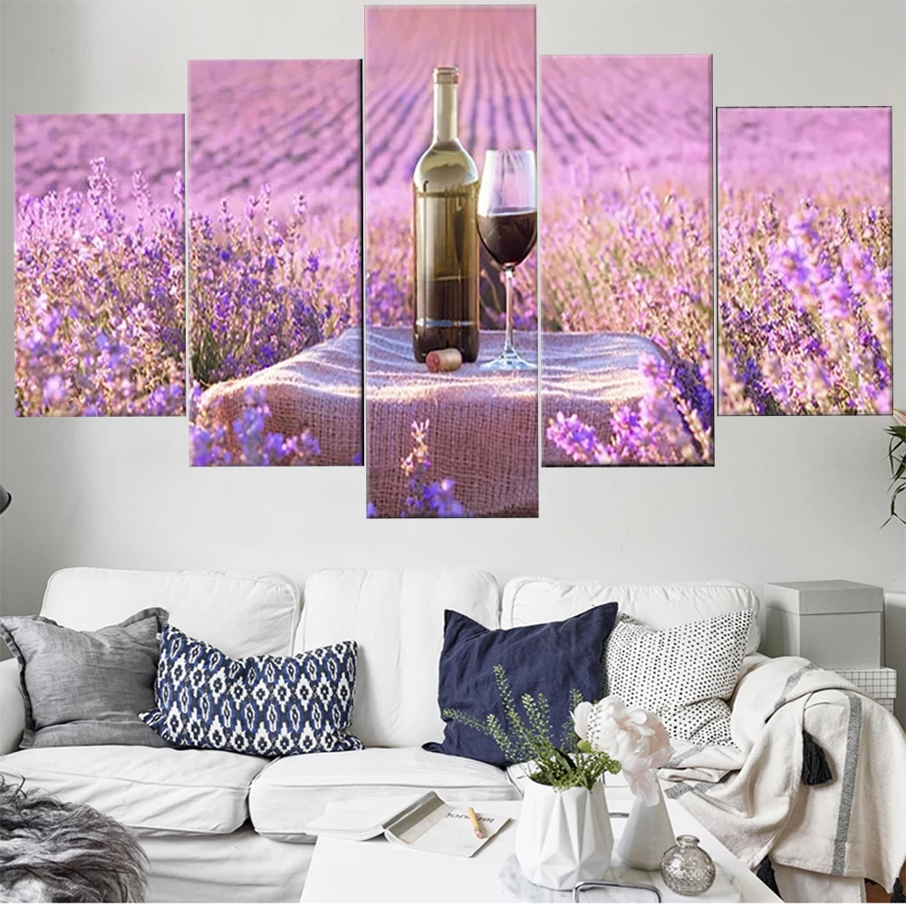 5 шт. настенное искусство, Цветочный Ландшафтный постер, современное свежее красное вино, гостиная, спальня, украшение для дома