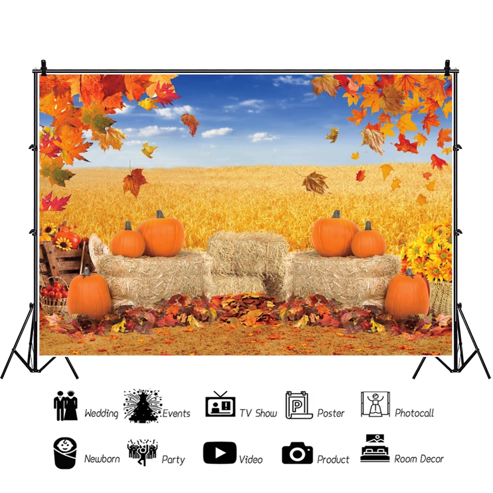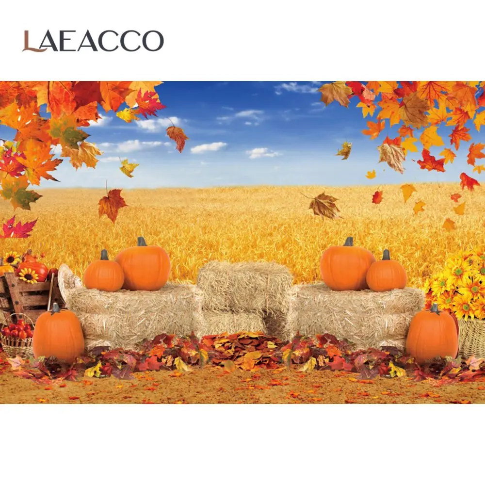 Осенние фоны для фотосъемки желтые опавшие кленовые листья стог сена для детей новорожденных фотозона фото фон для фотостудии