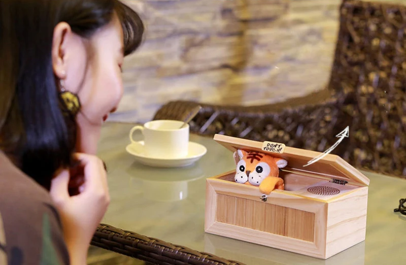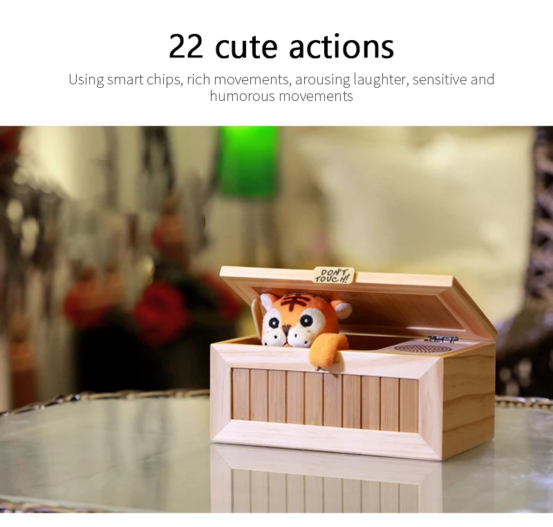 Деревянная электронная бесполезная коробка, милый тигр, забавная игрушка, Интерактивная игрушка, украшение стола для снятия стресса, антистрессовые игрушки для детей