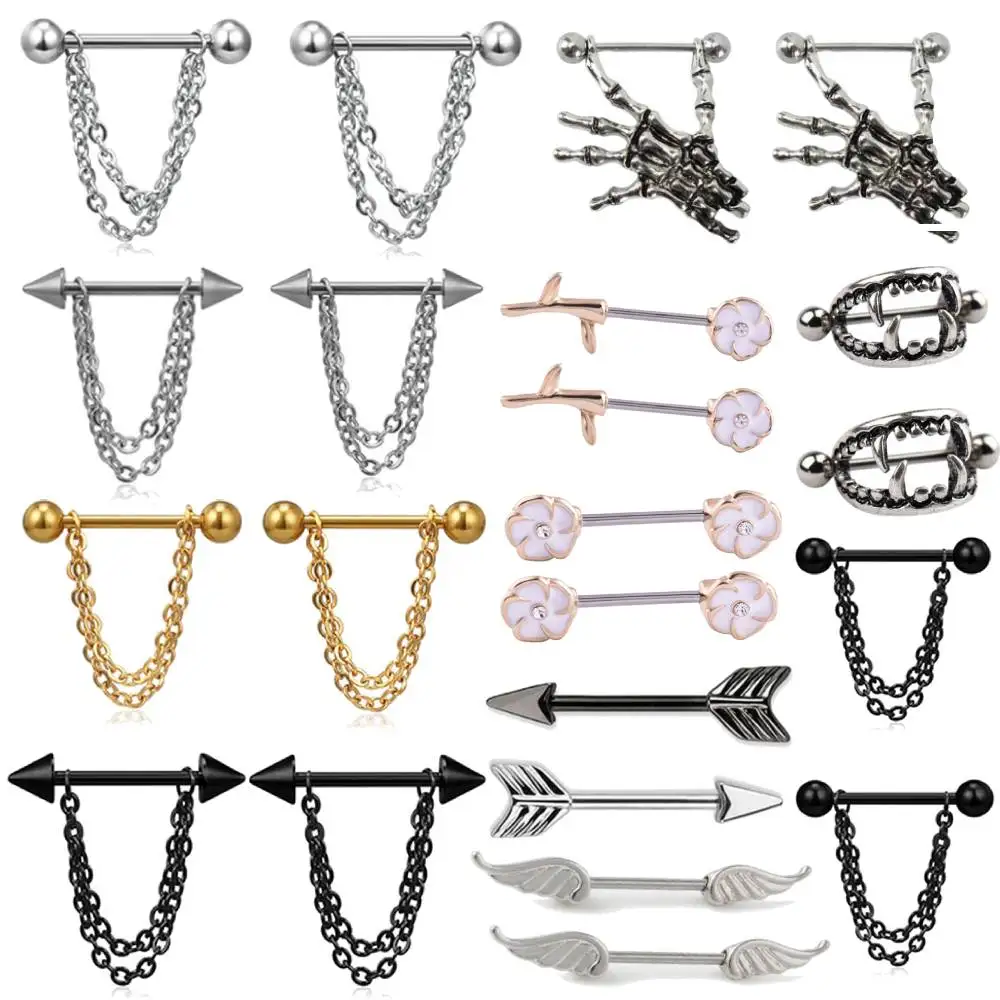 Горячая Распродажа крутая цепь 14G Штанга пирсинг для соска кольцо ...