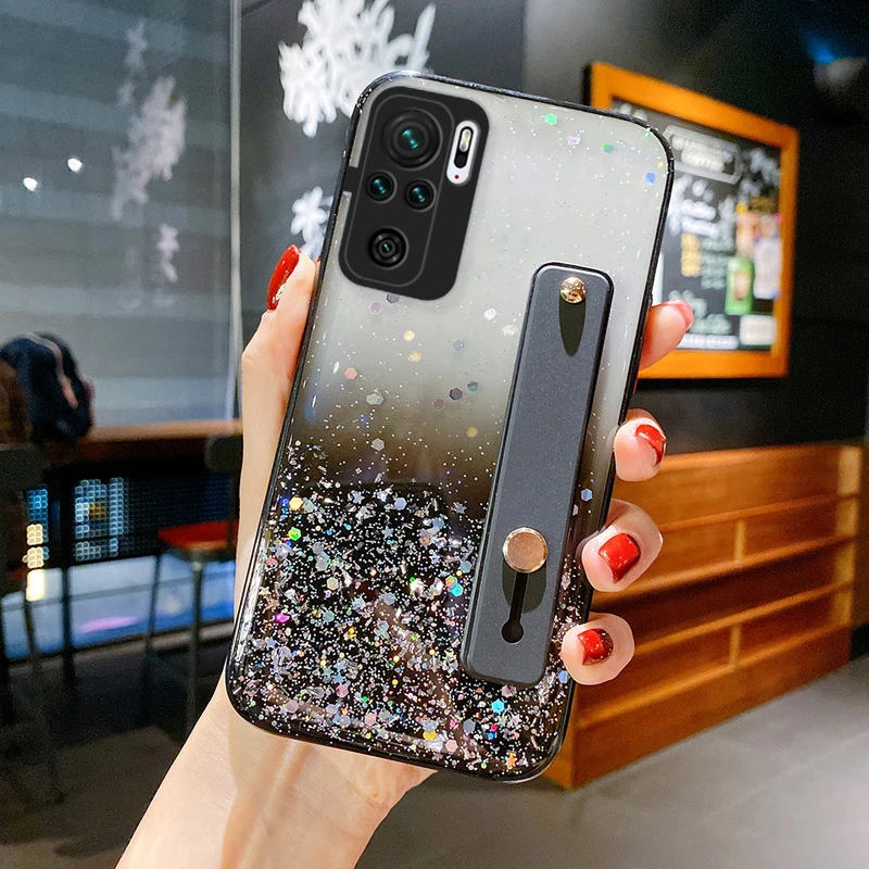 С ремешком на запястье Блестящий держатель для телефона чехол для Xiaomi Redmi Note 10 9 Pro Max 8 Poco X3 M3 11 10 Lite мягкий прозрачный чехол