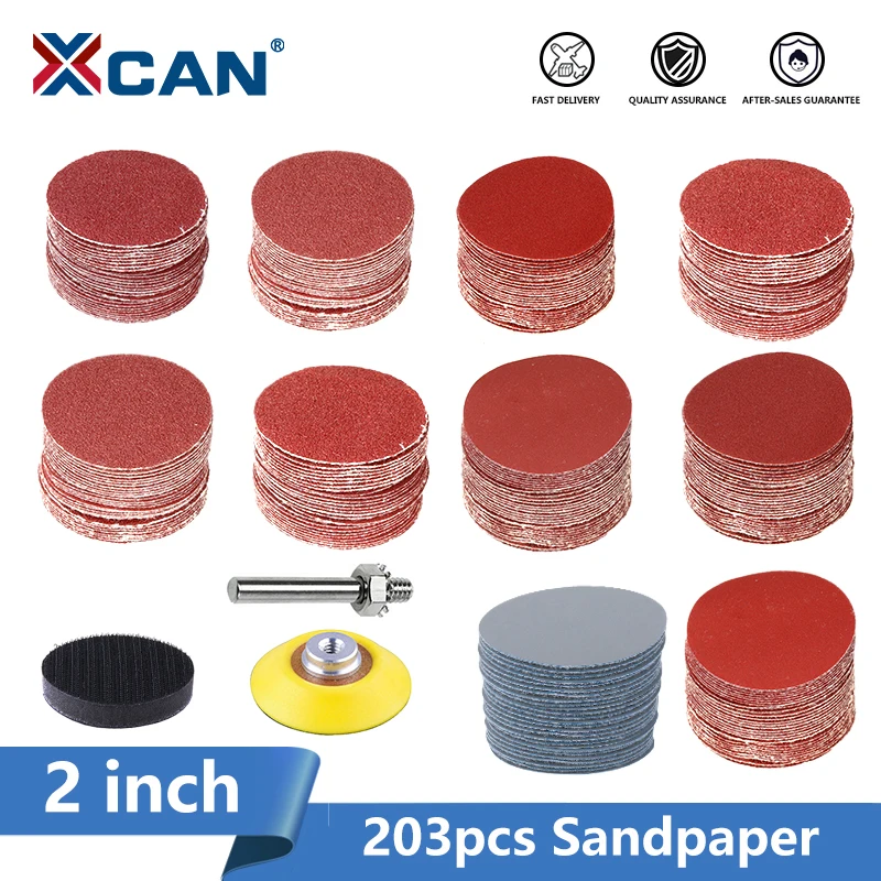 XCAN 2 дюйма шлифовальный диск 203 шт 80-3000 зернистость с Stiky диск и Подушка Pad шлифование наждачной бумагой Pad