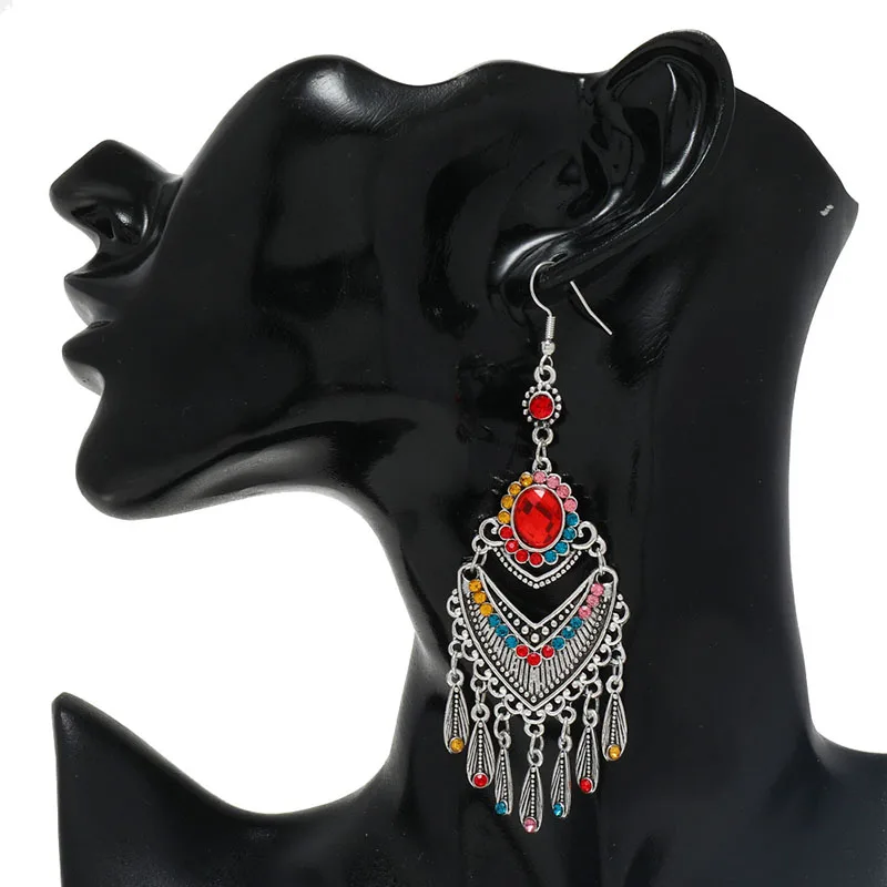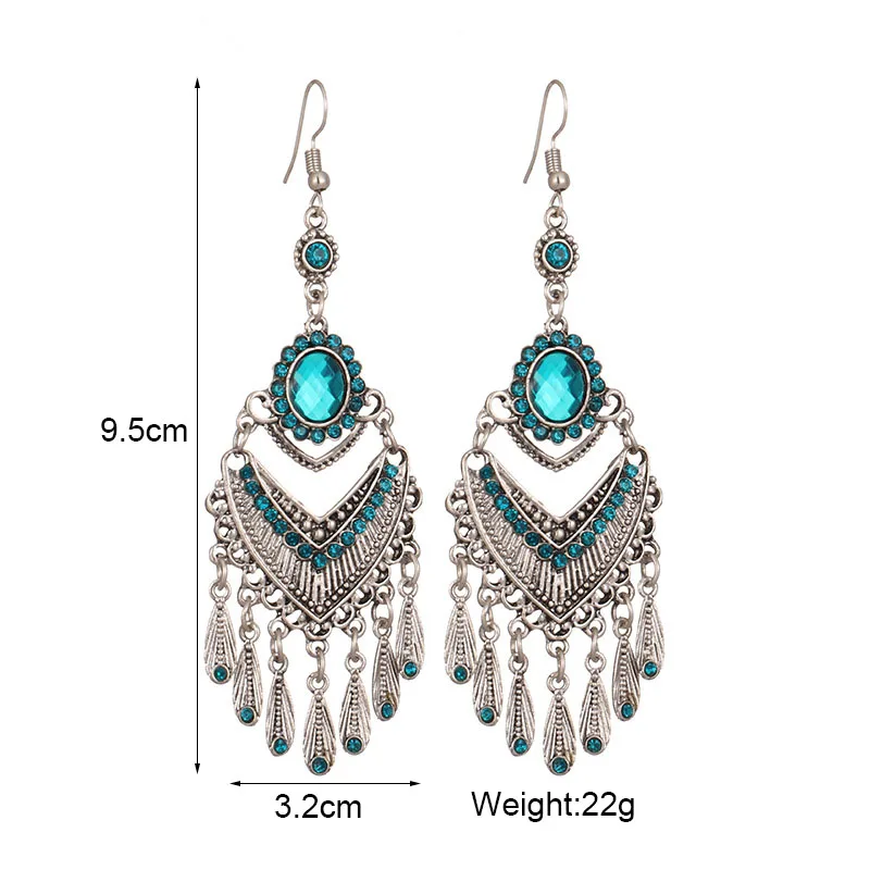 Богемные этнические серьги-подвески Стразы с кристаллами для женщин винтажные длинные антикварные серебряные украшения