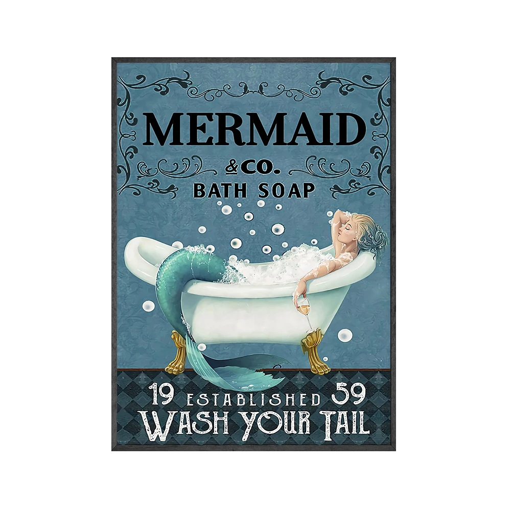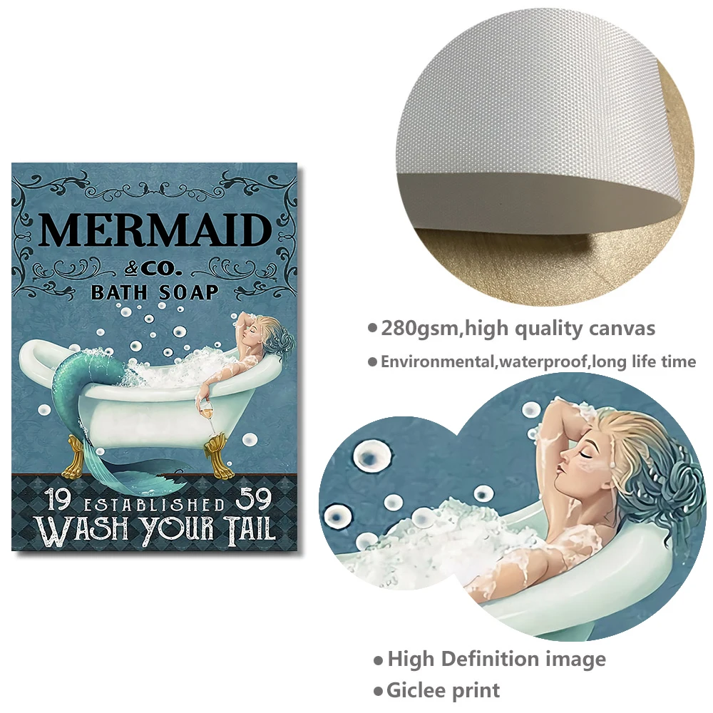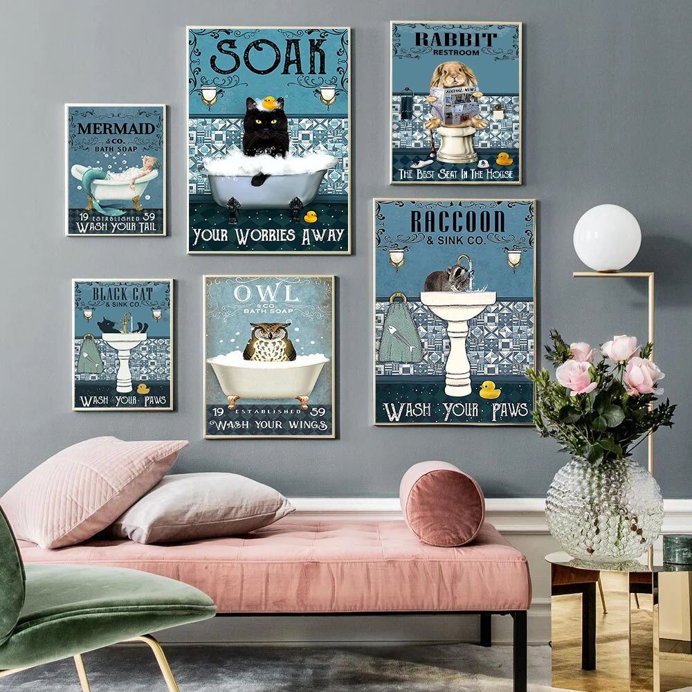 Настенная картина с изображением кошки, русалки, мопса, енота, панды, жирафа, ванны, настенная Картина на холсте, Постер в скандинавском стиле, настенные картины, декор для детской комнаты, туалета