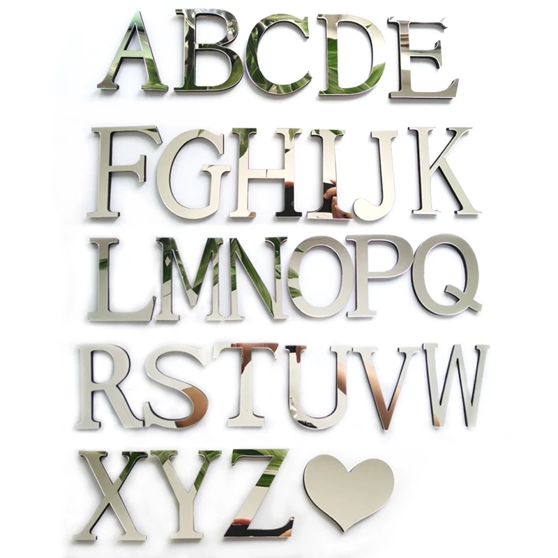 Акриловая Зеркальная Наклейка на стену с английскими буквами, 3D Серебряный плакат с алфавитом, украшение для спальни, фестиваля, вечеринки, роспись своими руками