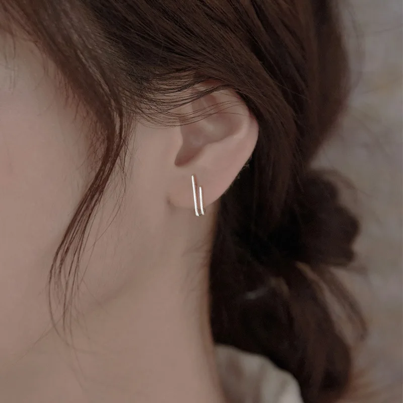 Серьги-гвоздики из серебра с двумя прямоугольными соединениями