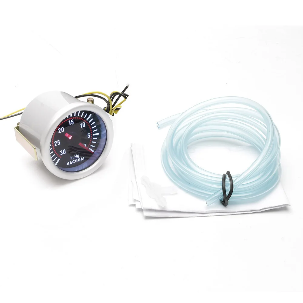 Автомобильный вакуумный измеритель, лампа с белсветодиодный светодиодом, с дымовой линзой, 2 дюйма, 52 мм, 12 В, диапазон измерения-30 0 дюймов рт. Ст.