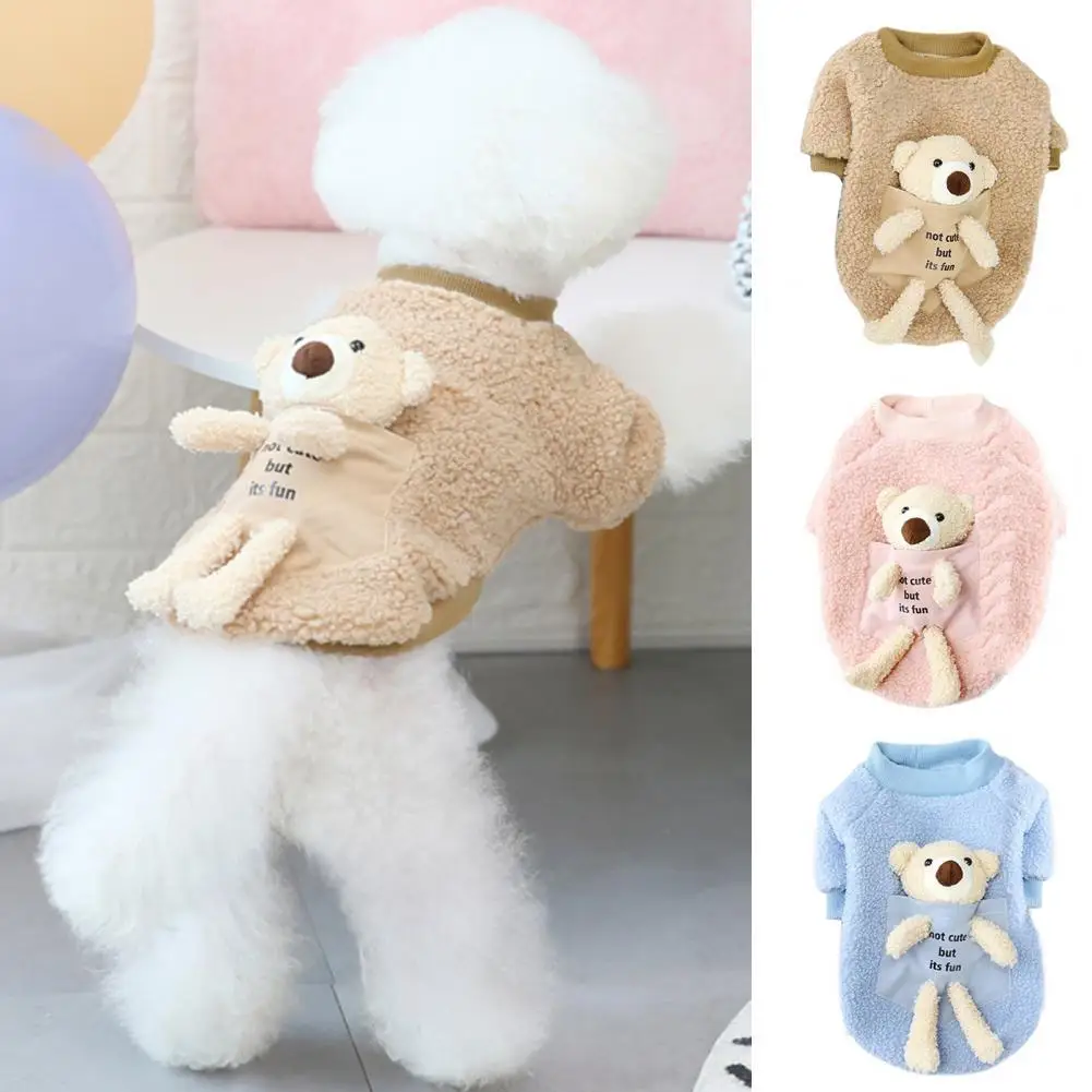 Лидер продаж 80%, Толстовка для питомца с круглым вырезом, сохраняет тепло, приятный для кожи, утепленная флисовая рубашка для щенка, одежда с куклой-медведем на осень