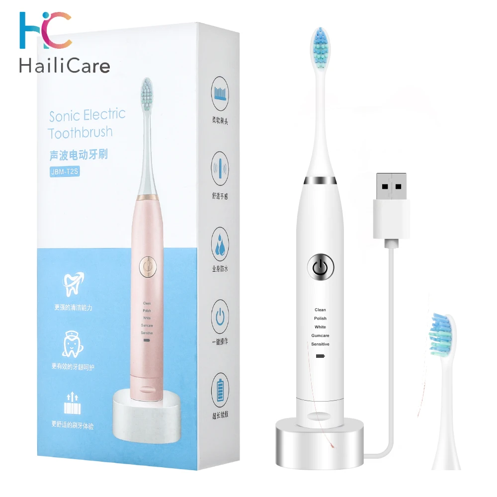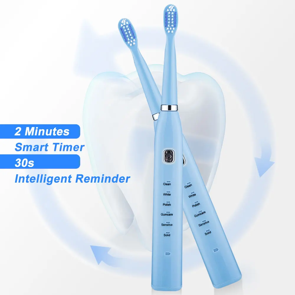 Ультразвуковая электрическая зубная щетка для взрослых умная зубная щетка перезаряжаемая отбеливающая зубная щетка Сменная головка IPX7 водонепроницаемая