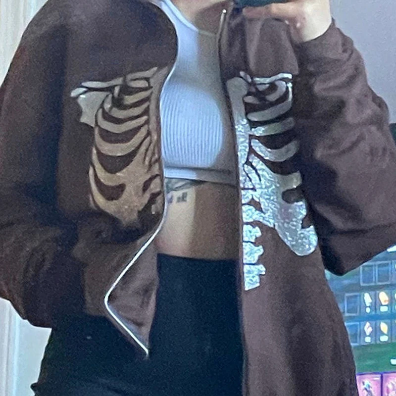 Женская толстовка с длинным рукавом, на молнии, с принтом скелета