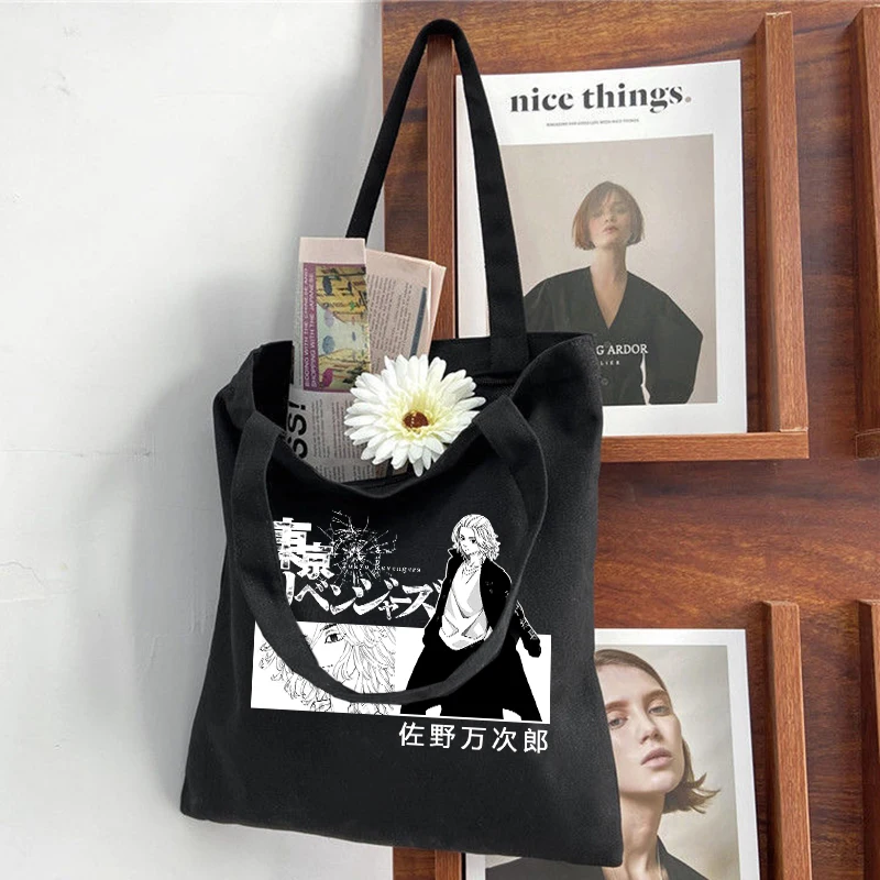 Сумка-тоут манга Токио Мстители Y2K, черная винтажная Холщовая Сумк...