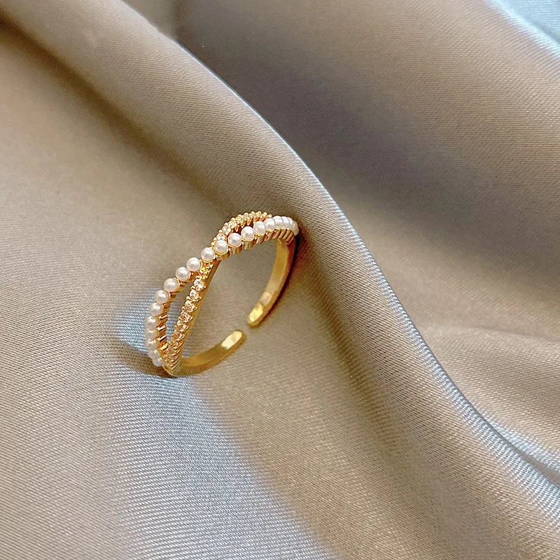 Женское кольцо с жемчугом и бабочкой, регулируемое металлическое кольцо