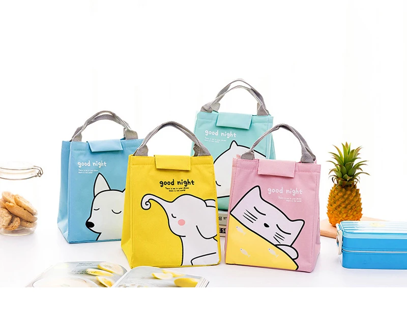 Термосумка для обеда с принтом кошек, водонепроницаемая сумка-холодильник с принтом животных, портативная изолированная сумка для пикника для девочек