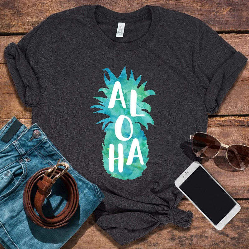 Футболка Aloha с ананасом, футболки с графическим рисунком Гавайская уличная мода 2021, мужские футболки, Женская пляжная одежда оверсайз
