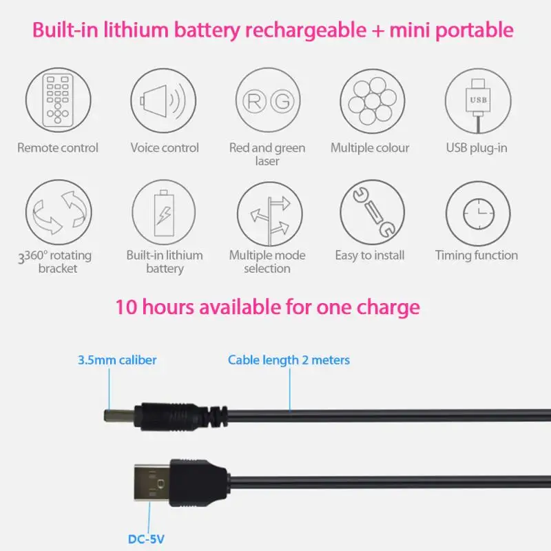 120 узоров, миниатюрный светодиодный RGB-прожектор для диджея, освещение для дискотеки, праздничный перезаряжаемый лазерный проектор, сцсветильник свет с дистанционным управлением для вечевечерние и дома