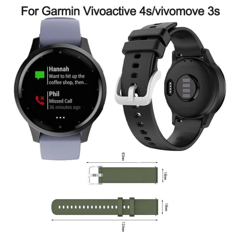 Сменный ремешок для часов 18 мм, силиконовый Серебряный ремешок с пряжкой для Garmin Vivoactive 4svivomove 3s, удобный ремешок с пряжкой