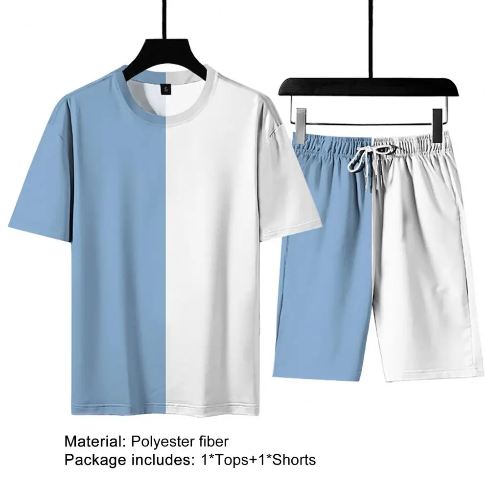 Мужской спортивный костюм из двух предметов, футболка с коротким рукавом и шорты с круглым вырезом