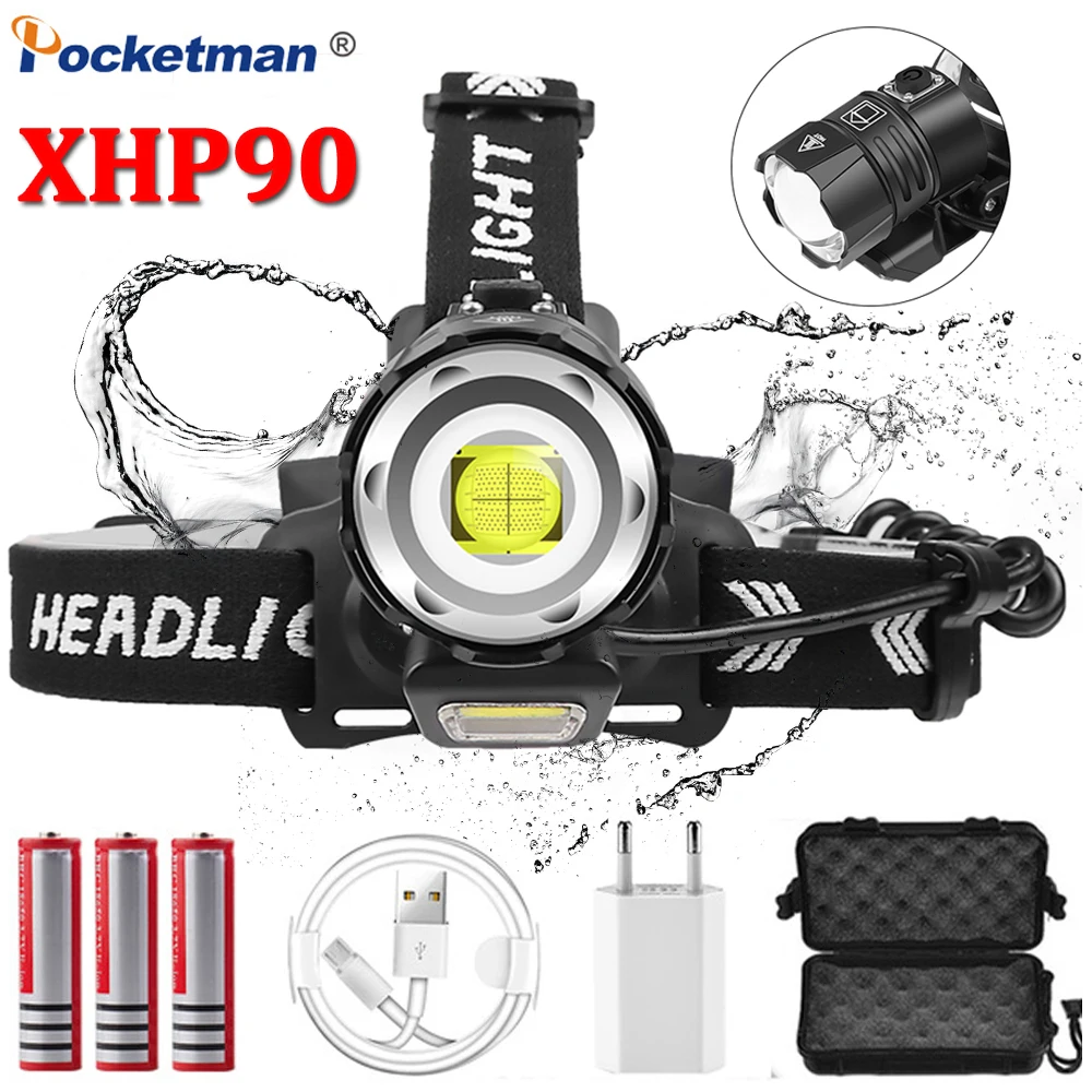 Суперъяркий светодиодный налобный фонарь XHP90.2 с COB матрицей, ак...