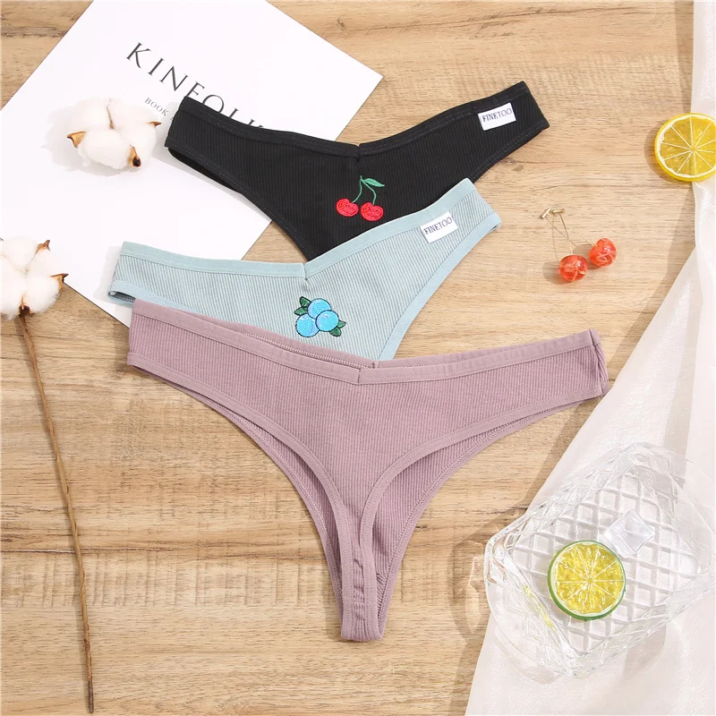 Сексуальные трусики с вышивкой фруктов, хлопковые стринги, женское нижнее белье, стринги, женское нижнее белье, трусики, трусики с Т-образной спинкой, нижнее белье, трусики